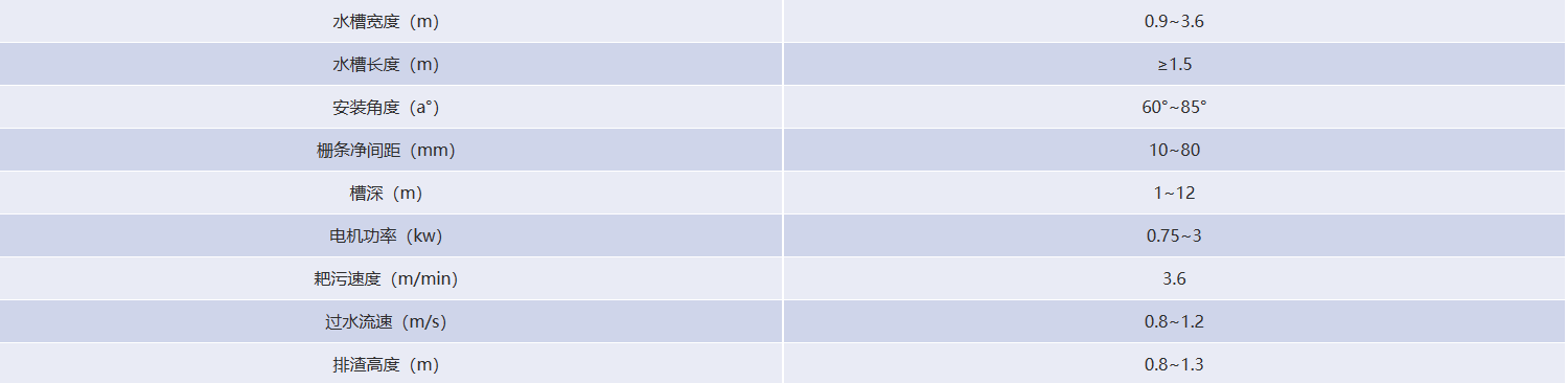 1、訂貨時注明:槽寬、槽深、水深、安裝角度、柵條間隙、排渣高度、材質(zhì)要求。