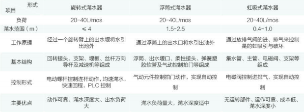 選擇潷水器三要素:池形面積-S(m2)5/h,出水量-Q(m), 潷水深度-△H(m)