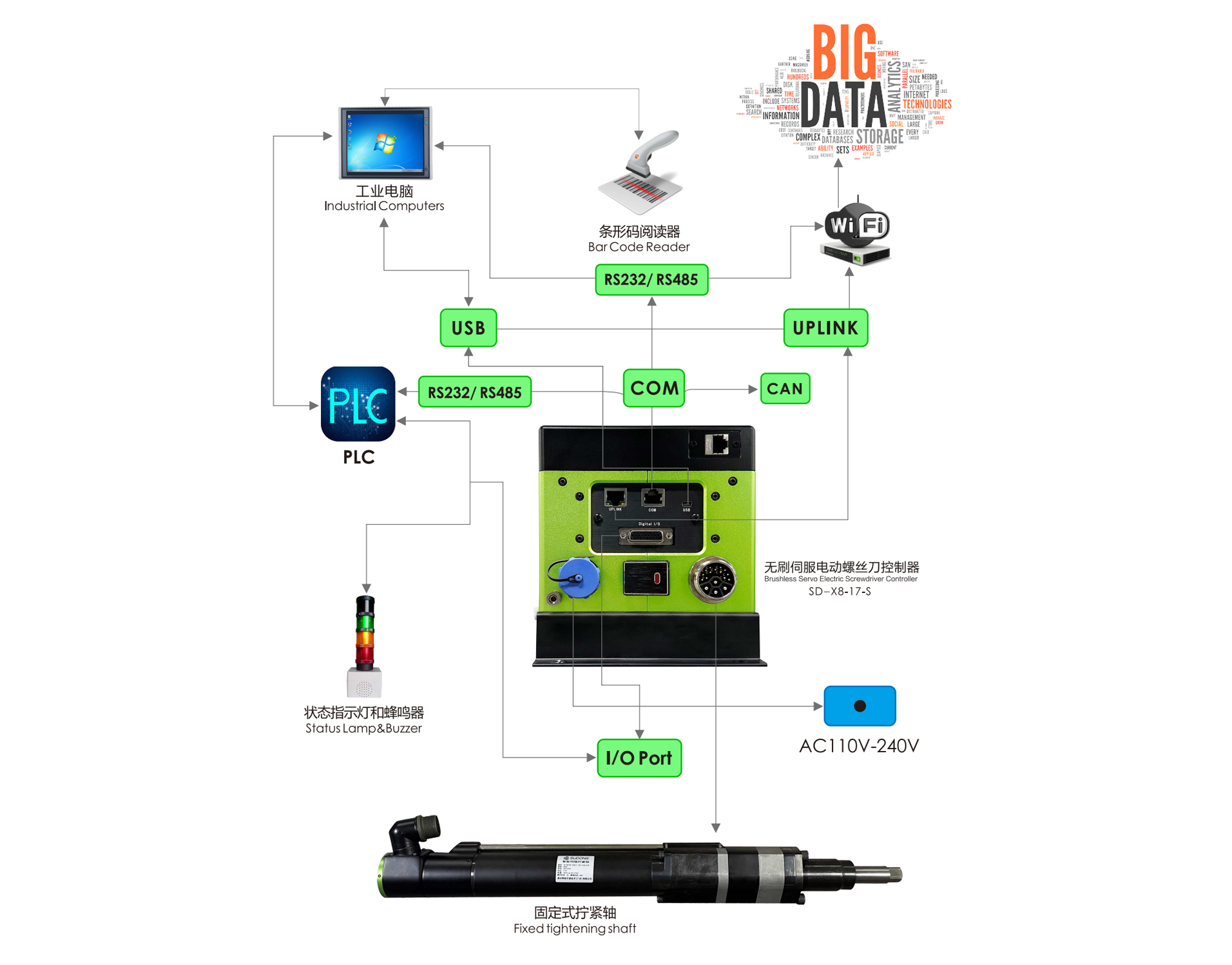 2、可通過任一通信端口與所有系統融合,接入生產管理系統和以太網打破了地域限制,實現遠程監控擰緊過程。