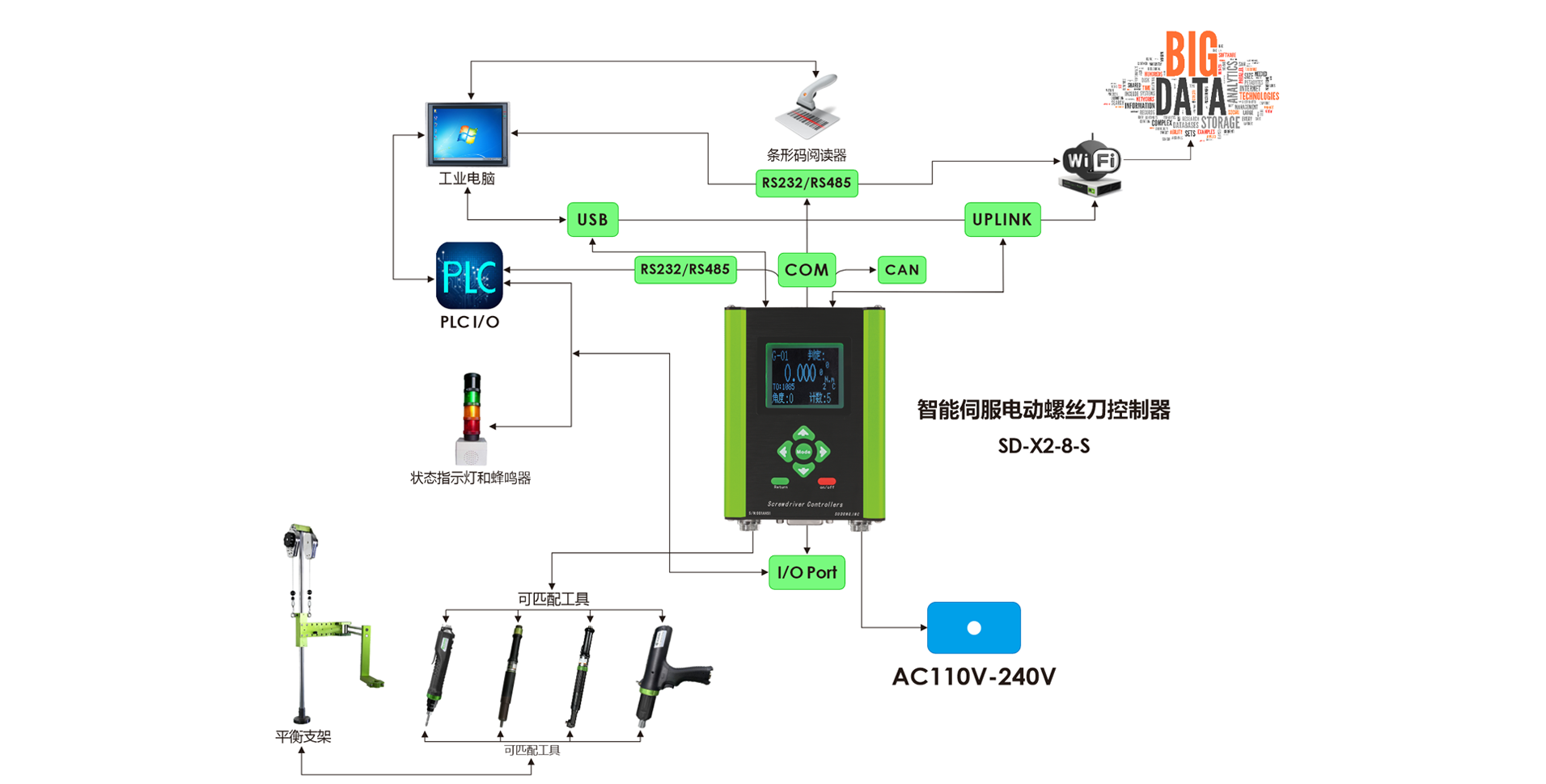 將條碼掃描器與控制器連接,確保數據可追溯性,防止操作員可能存在的錯誤擰緊,可與生產管理系統進行無障礙連接,全面監測生產過程;